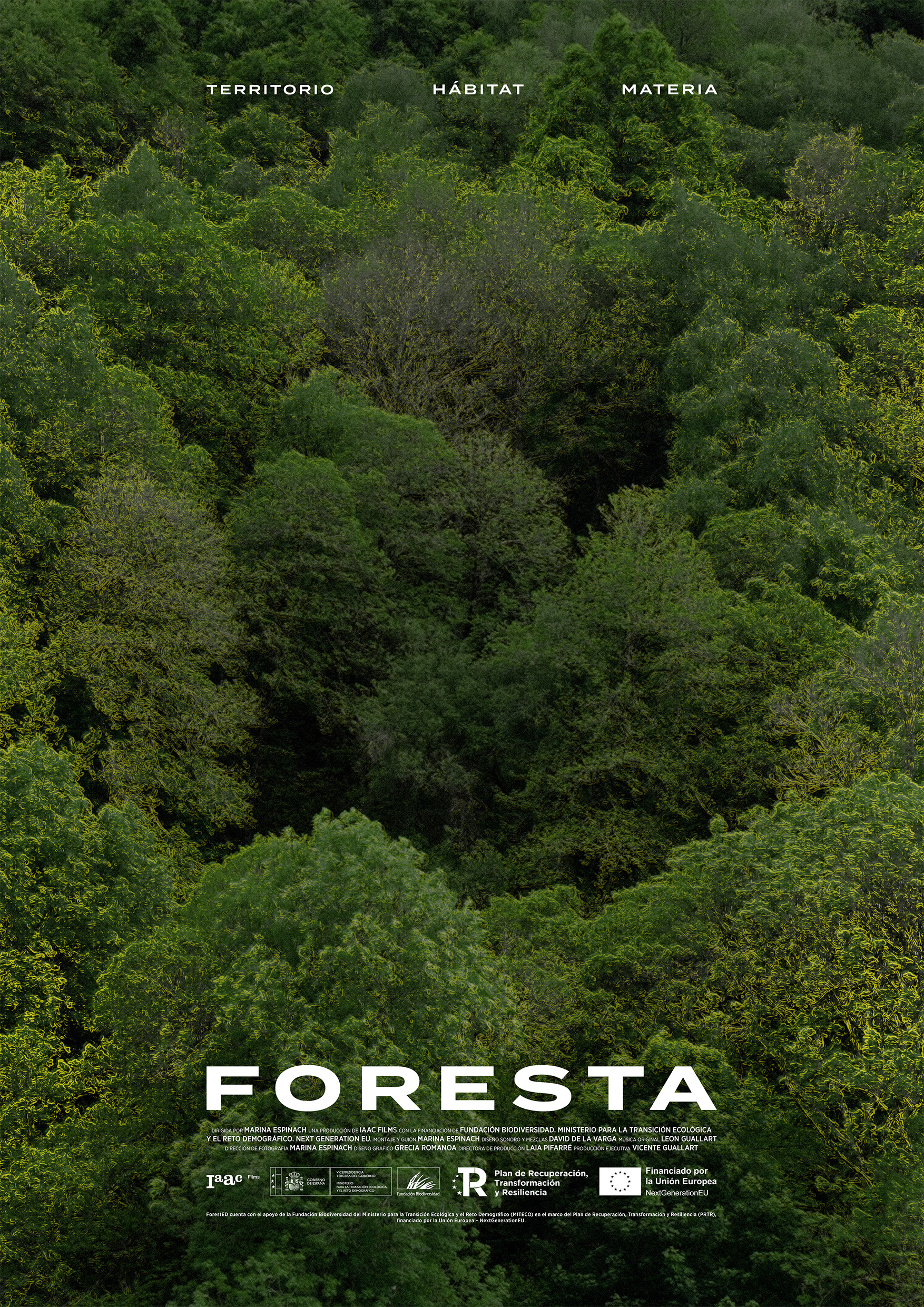 “Foresta surge del deseo de mirar con atención y desde múltiples perspectivas la compleja relación entre los humanos y los bosques que habitamos y transformamos. La película se adentra en paisajes en transición donde ecología, economía y tecnología se entrelazan en redes de conocimientos, prácticas y tensiones. A través de una observación minuciosa, la cámara se detiene en conceptos, preocupaciones y gestos que revelan las formas diversas de entender, cuidar o violentar el bosque. El filme se organiza en tres partes interconectadas que recorren tres escalas del tejido forestal: territorio, hábitat y materia. Cada uno de estos capítulos se sitúa en un enclave forestal español particular: primero, los montes de Lugo, marcados por un desigual acceso a la producción de materia prima; segundo, los montes del pre-pirineo catalán, donde la pérdida de los usos tradicionales del territorio afecta a comunidades de humanos y no humanos; y tercero, un laboratorio en la periferia boscosa de Barcelona, donde un grupo de científicos y arquitectos busca nuevas formas de entender la producción y transformación del bosque.”