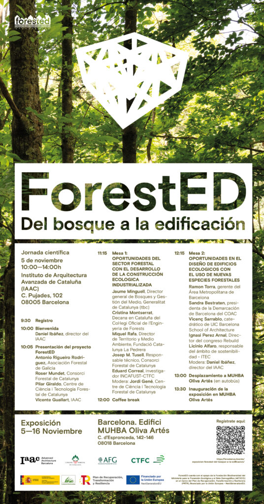 De carácter itinerante, la exposición viajará por Galicia, Cataluña y Madrid, acercando el proyecto a diferentes públicos. Cada inauguración contará con actividades abiertas y encuentros con profesionales del ámbito forestal, la innovación y la arquitectura, además de un programa educativo dirigido a escuelas e institutos.