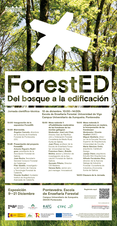 De carácter itinerante, la exposición viajará por Galicia, Cataluña y Madrid, acercando el proyecto a diferentes públicos. Cada inauguración contará con actividades abiertas y encuentros con profesionales del ámbito forestal, la innovación y la arquitectura, además de un programa educativo dirigido a escuelas e institutos.