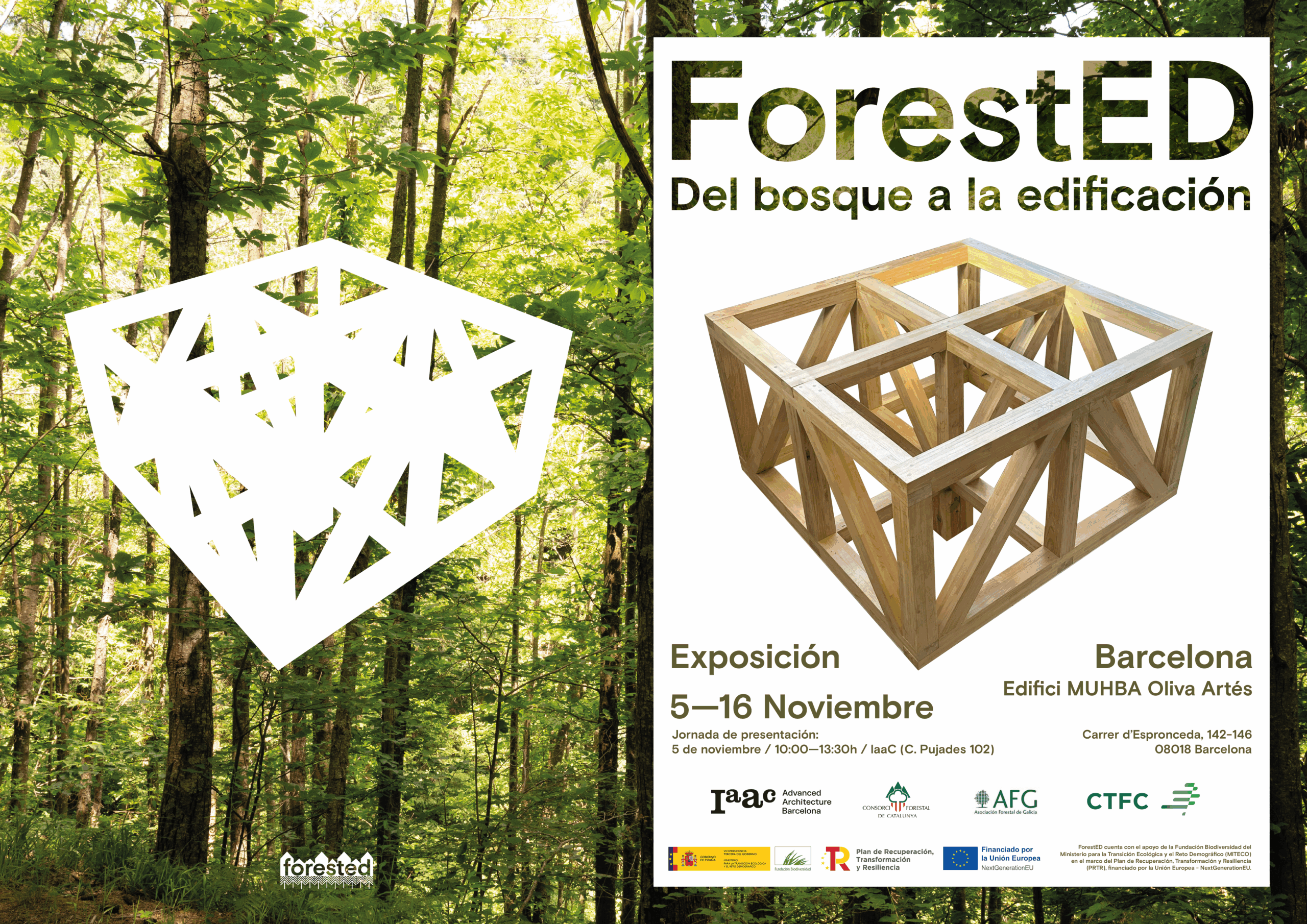 La jornada científica tendrá lugar el miércoles 5 de noviembre de 2025 de 10:00 a 13:00h en el IAAC (C/ Pujades, 102, Barcelona). Durante la mañana se presentará el proyecto ForestED y se debatirá sobre las oportunidades del sector forestal y de la construcción ecológica a través de dos mesas científicas.